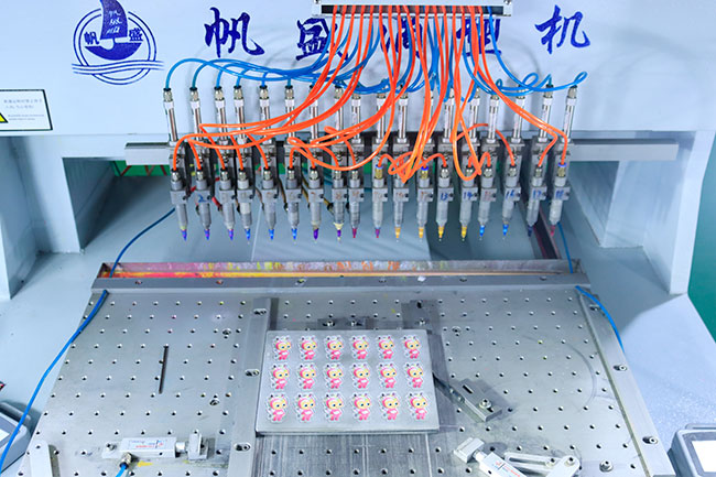 自動(dòng)點(diǎn)膠機(jī)制作PVC工藝品時(shí)候很大程度上提高了生產(chǎn)效率,提高了產(chǎn)品的品質(zhì),能夠?qū)崿F(xiàn)一些手動(dòng)點(diǎn)膠無(wú)法完成的工藝。自動(dòng)點(diǎn)膠機(jī)在自動(dòng)化程度上,能夠?qū)崿F(xiàn)三軸聯(lián)動(dòng),智能化工作。綜上所述,下面為您講解自動(dòng)點(diǎn)膠機(jī)具體特性如下: